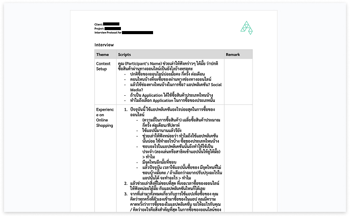 To find out motivations, user gain and pain points on purchasing items via our client’s application and other online shopping apps.