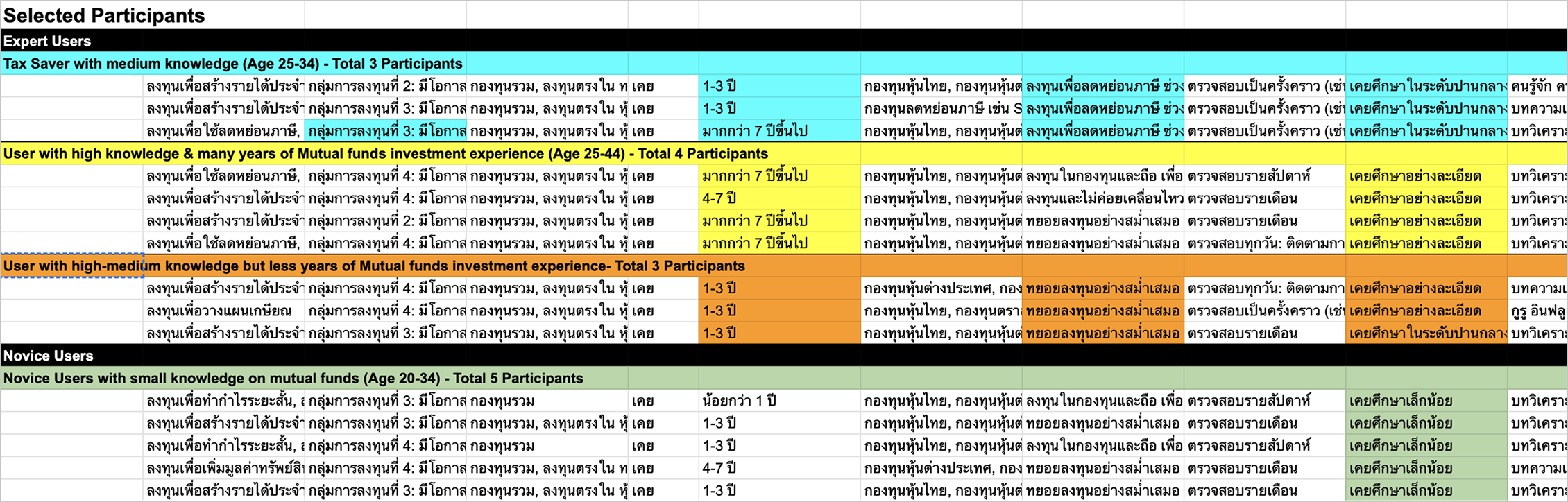 To better understand the target users, I led a qualitative research to develop investor personas. I defined the research objectives, recruited participants with different investment experiences, and conducted in-depth interviews to understand their motivations, goals, and decision-making patterns on finding mutual funds to invest.