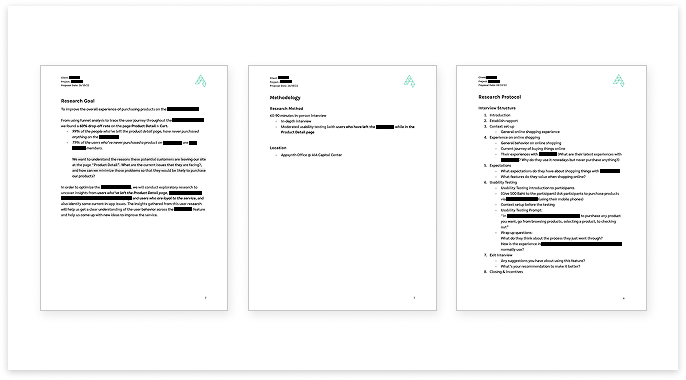 Meanwhile, talking to the PM (as a representative of the client side) ensured that what we were trying to find out would align with the business goal of our client. (In this case, the client's goal was to drive the conversion rates of the funnel - promote purchases on their platform.)
