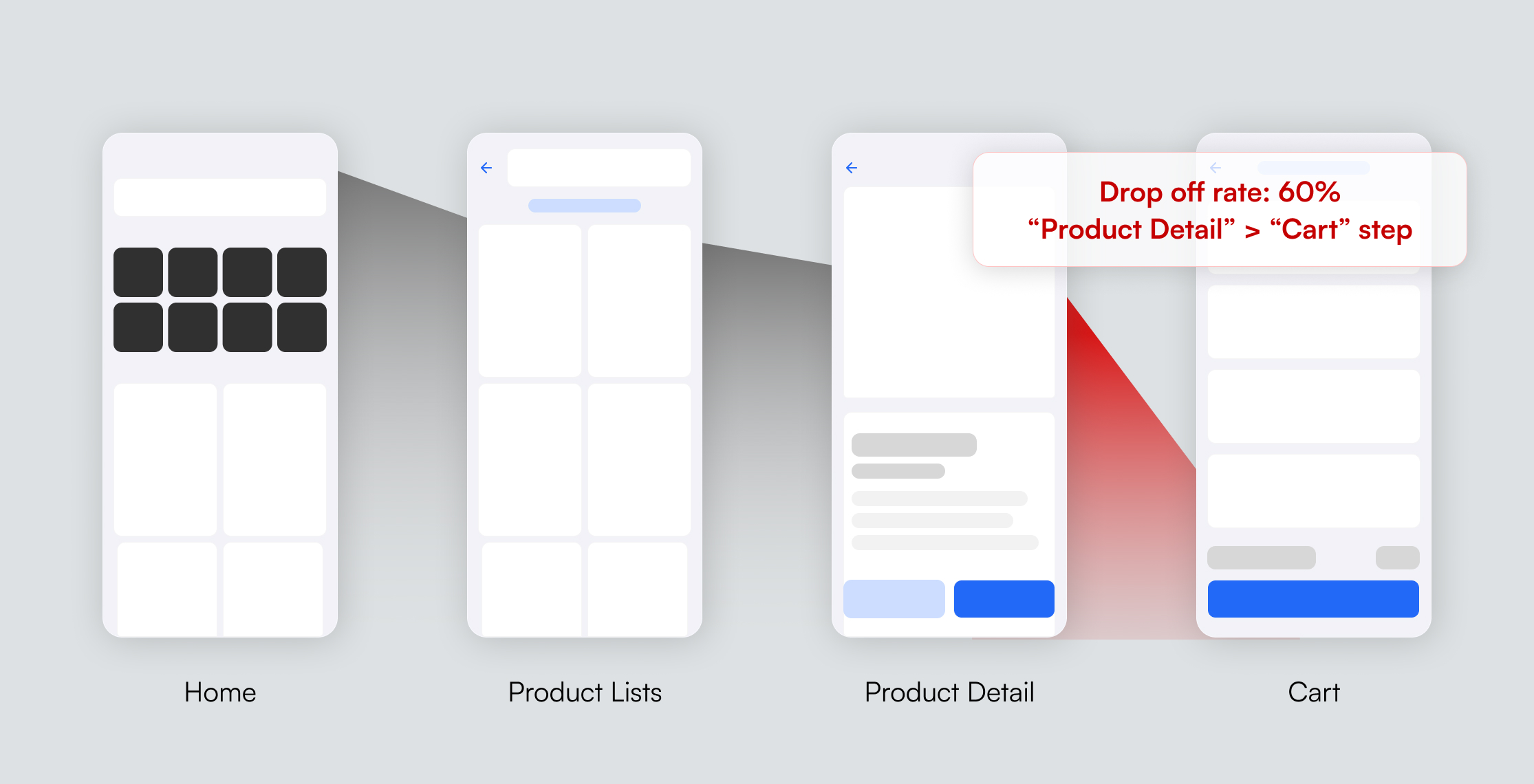 Our team found a major drop-off rate at 60% at the step “Product Detail” to “Cart”, but the data alone couldn’t explain why.